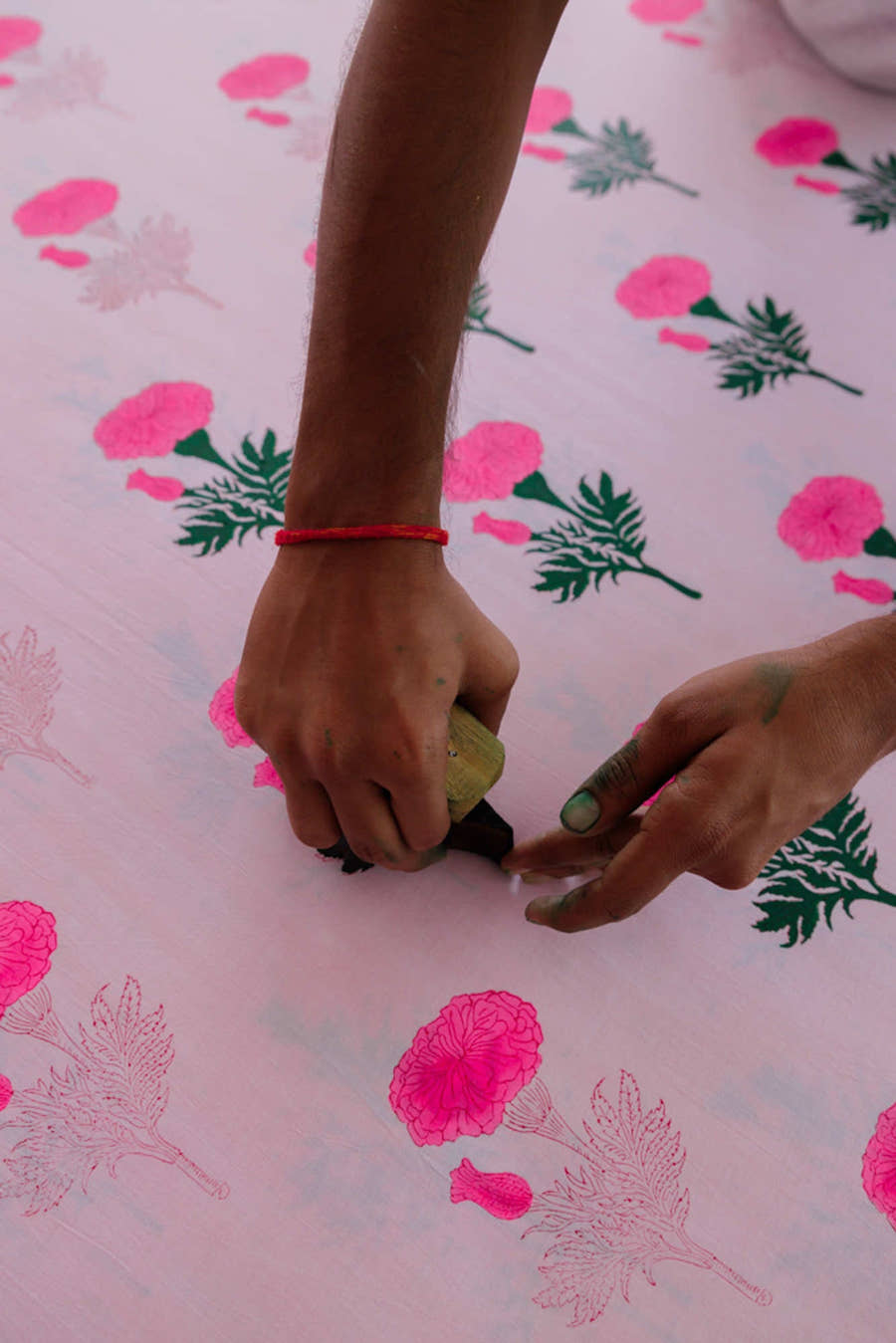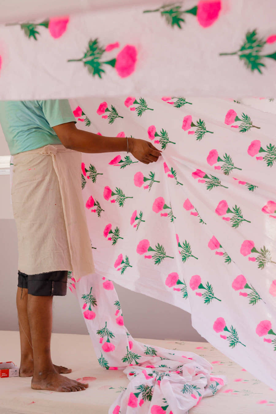 “Quality is everything to me, and working with handmade textiles comes with its own unique challenges. Aligning colours perfectly by hand is a true skill, and there are natural limitations like the weather and how the artisan works the block and the complexity of aligning the intricate patterns. But I think that’s what makes it so special - each piece carries the mark of the artisan who made it, with tiny variations that add to its charm and uniqueness.”