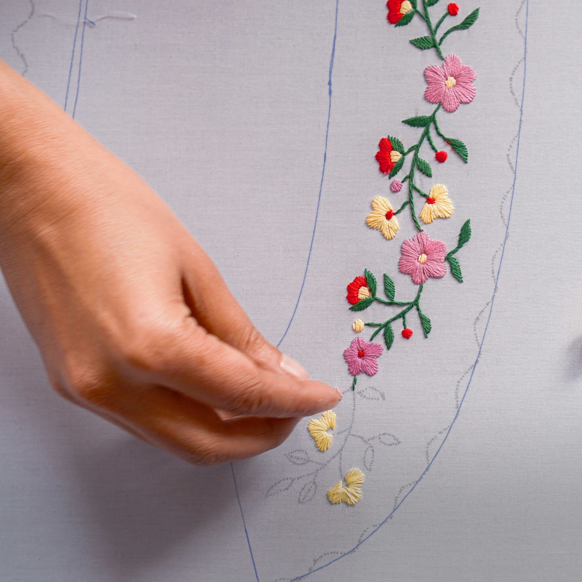 Each print starts as a hand-drawn design, painstakingly carved into wooden blocks. These blocks are dipped in richly pigmented dyes and pressed onto organic cotton, layer by layer. Some of our more intricate prints require up to six individual colour applications - each one stamped by hand with unwavering precision.