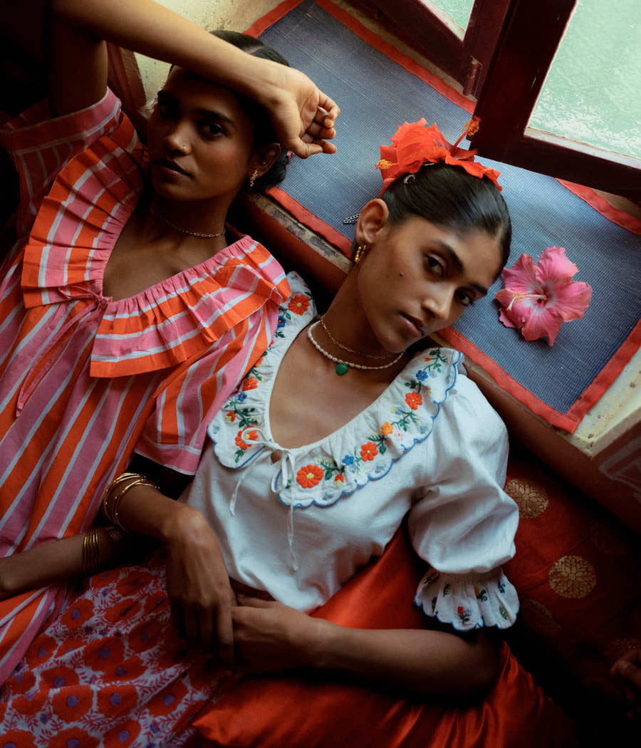 From hand-block printed dresses bursting with colour to breezy kaftans, quilted jackets, and versatile occasion pieces, our collections are designed to be lived in. Whether it’s sunshine-filled ginghams, intricate embroideries, or bold block prints,each piece is thoughtfully created to transition seamlessly from everyday moments to special occasions.