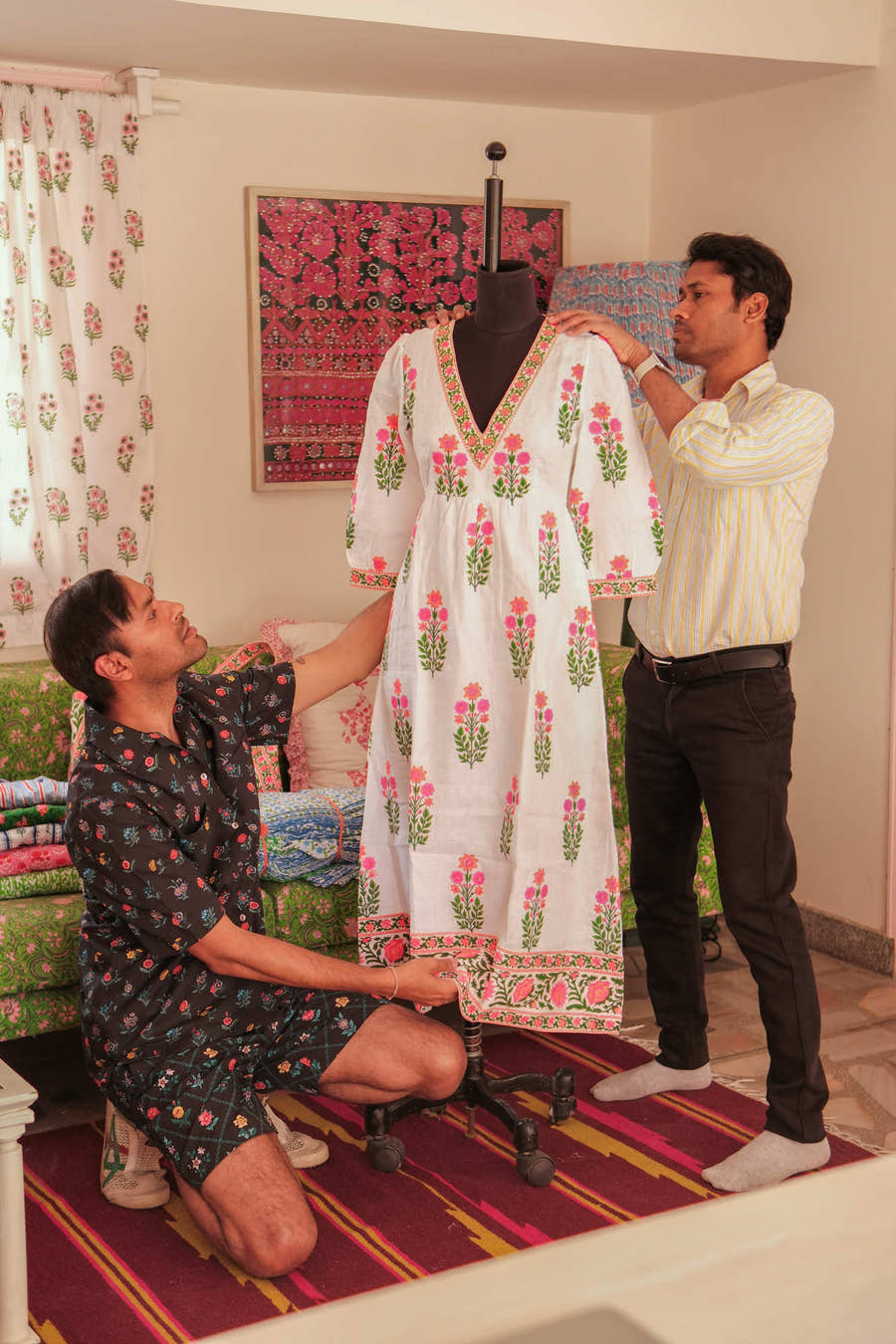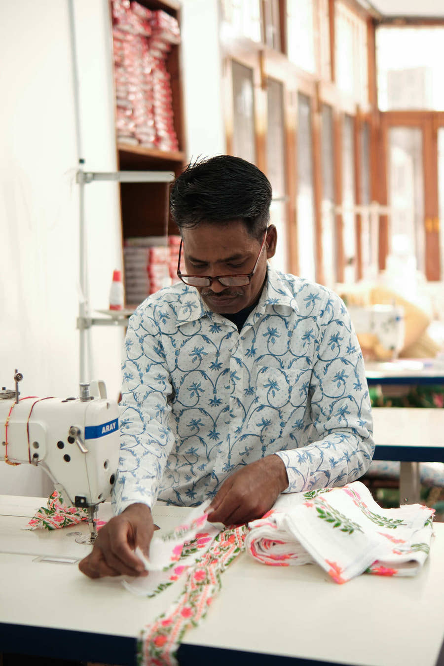 In the heart of Jaipur, we proudly run our design studio and our in-house stitching unit, where half of our annual production comes to life. Unlike most brands, we oversee every step of the process, ensuring exceptional craftsmanship in every piece. Though it’s more than just a workplace, our stitching unit is a family. We foster a joyful, supportive environment, with breaks in the garden and a focus on wellbeing. Our team enjoys yearly salary increases, health insurance, and double pay for overtime.
